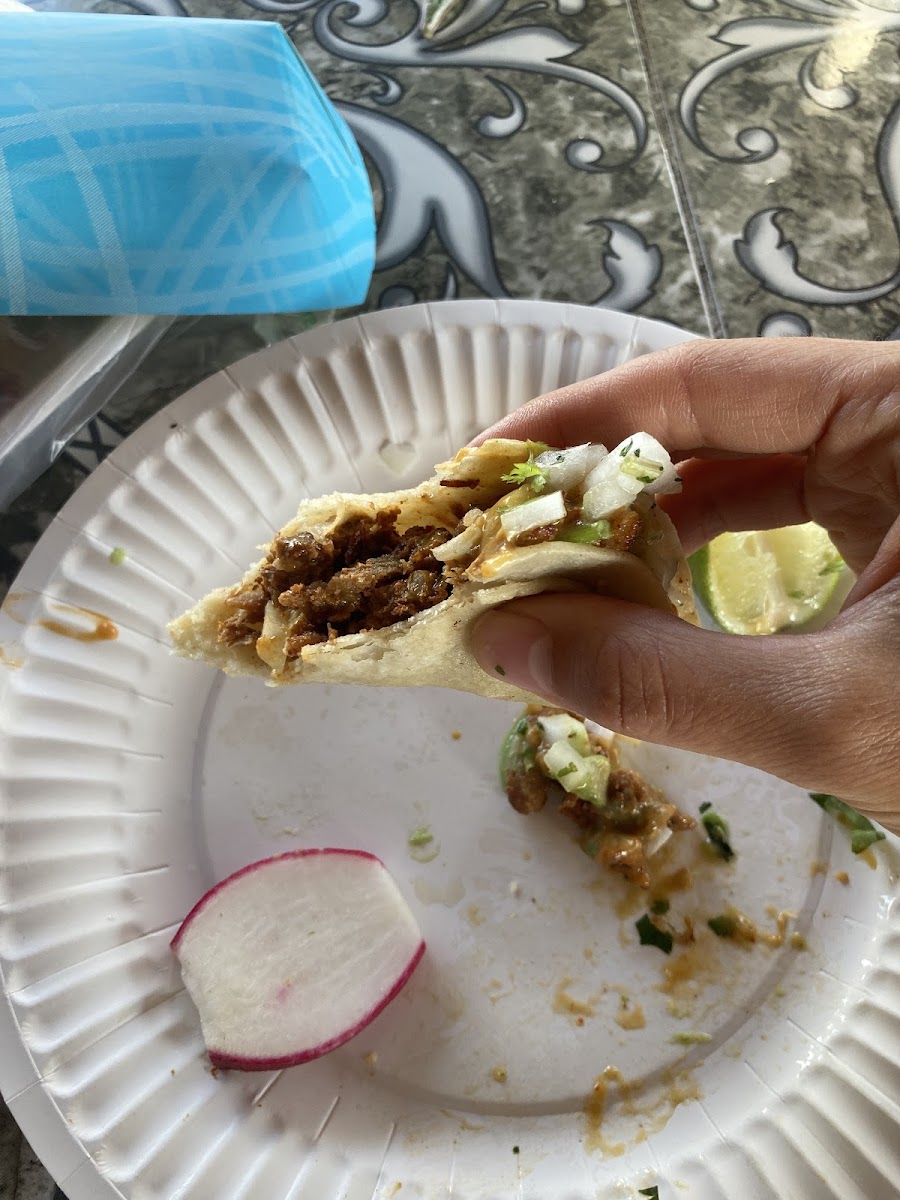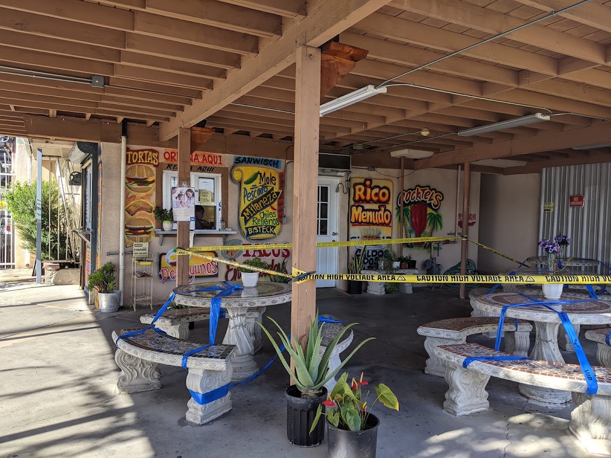 Cute corner spot with shady tables and excellent tacos. Chose it on a whim and will definitely come back. They even gave my dog some water in a little to go bowl thanks San Andres!!